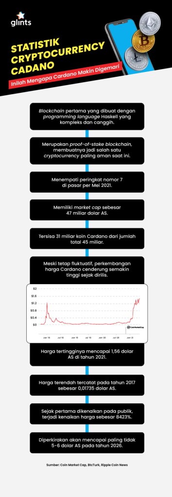 Melansir Yahoo Finance, cryptocurrency Cardano dirilis tahun 2015 dan dikenal dengan simbol token ADA. Cryptocurrency ini diciptakan oleh Charles Hoskinson, seorang pegiat bidang matematika yang sekaligus entrepreneur. Nah, Hoskinson sebelumnya sudah berpengalaman dalam dunia mata uang kripto yaitu ketika ia bekerja sama dengan beberapa orang lainnya untuk menciptakan Ethereum (ETH).